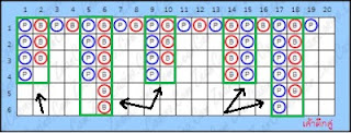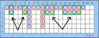 เค้าตึกคู่ หมายถึง ไพ่สองคอลัมน์ที่อยู่ติดกันออกชนะติดต่อกันมากกว่าสองคอลัมน์