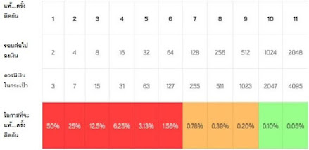 2.ทุกครั้งที่เสีย ให้เพิ่มยอดเงินเดิมพันเป็น 2 เท่าเสมอ จนกว่าจะชนะ ผลลัพธ์เมื่อกลับมาชนะก็คือ จะได้เงินที่เสียไปทั้งหมดกลับคืนมาพร้อมกับกำไร 1 หน่วย