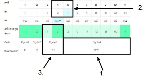 3. ในแต่ละ cycle ทุกครั้งที่นะ cycle จะจบลงทันที และไปเริ่มวางเดิมพันที่ 1 หน่วยเสมอ